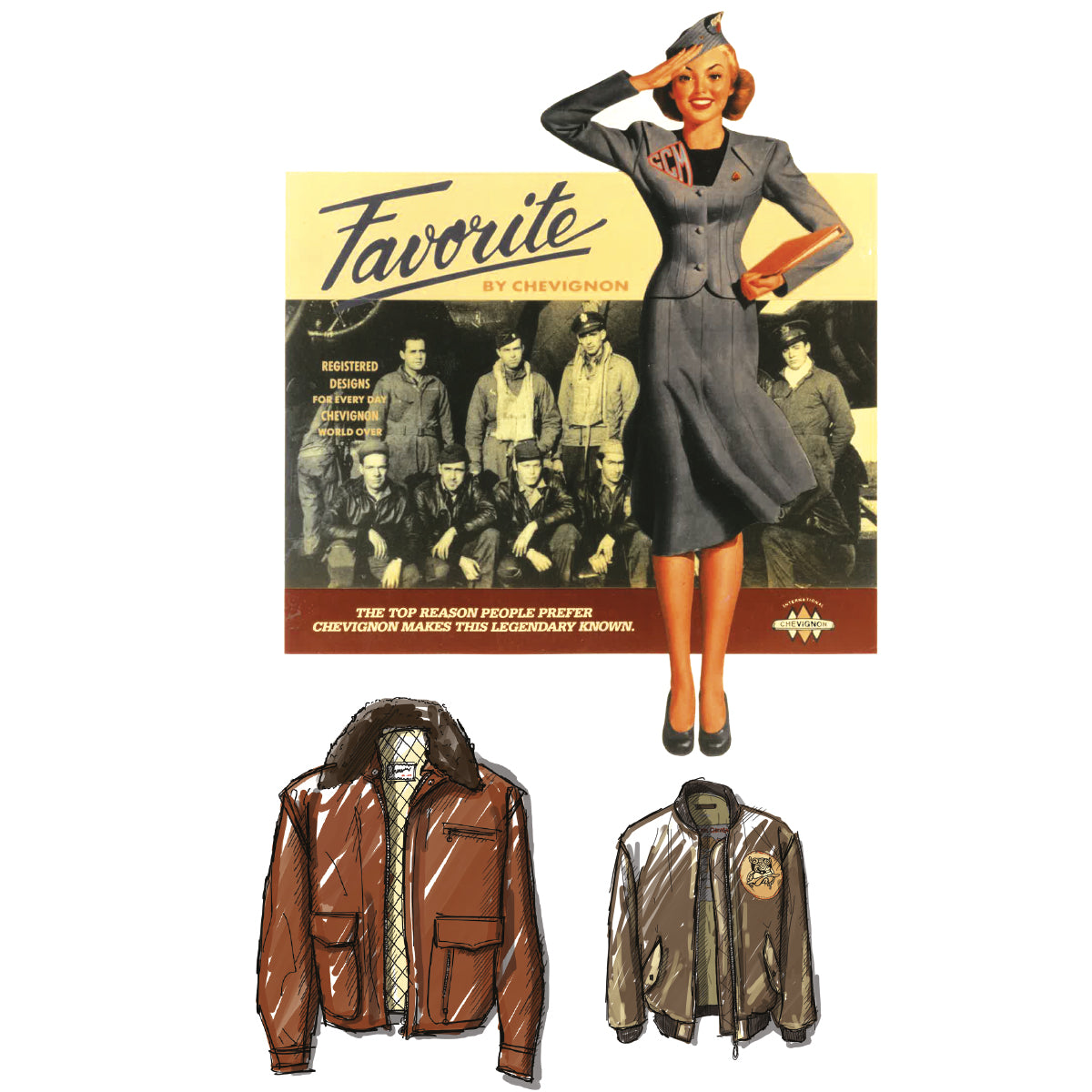Parler de l’histoire de CHEVIGNON, c’est commencer par raconter celle d’un blouson. Ce « flight » porté par les pilotes de l’aviation américaine des années 50. Beau, confortable, solide. Comme cet autre blouson, qui porta le nom d’un Français : Charles CHEVIGNON...